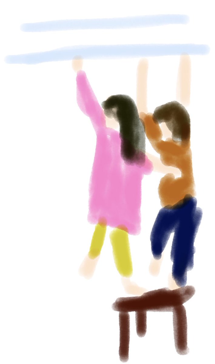 突っ張れなくなった突っ張り棒を家族と突っ張り直しました #お絵描き #イラスト