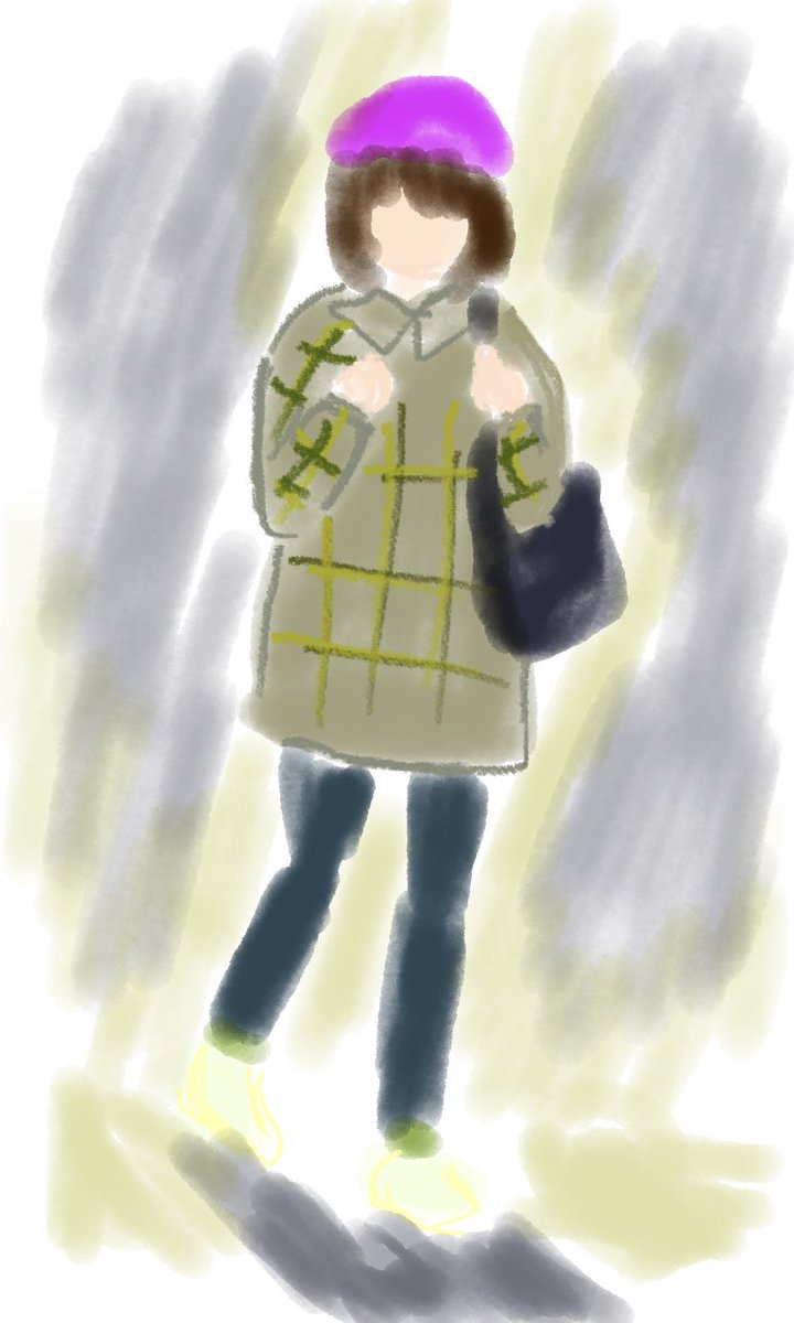 誰もコートの下がパジャマだとは気づくまい #お絵描き #イラスト