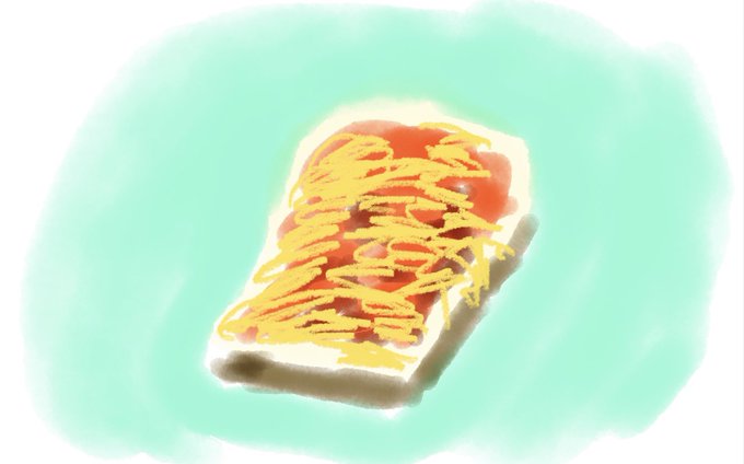 夕飯はピザトーストとビールとカラムーチョでした #お絵描き #イラスト