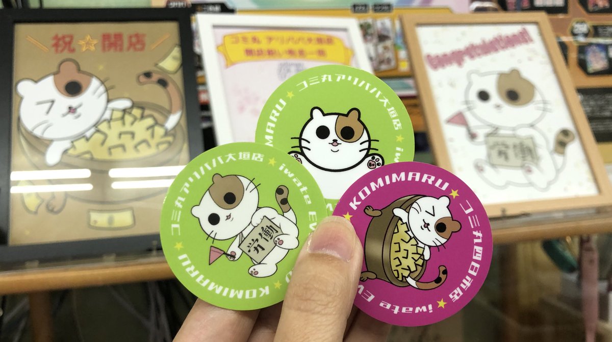 GS『アミュージメントスペースコミ丸 アリババ大垣店』の開店祝いにコミ丸を描かせていただきました!“労働”はあられ牡丹(海里)・札束風呂は私です(中央はデフォルト)。イベント等で頒布するステッカーと一緒に撮影〜📸 twitter.com/amuse_komimaru…