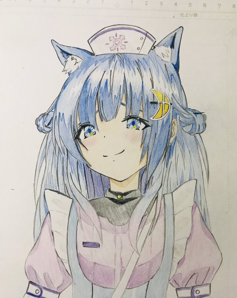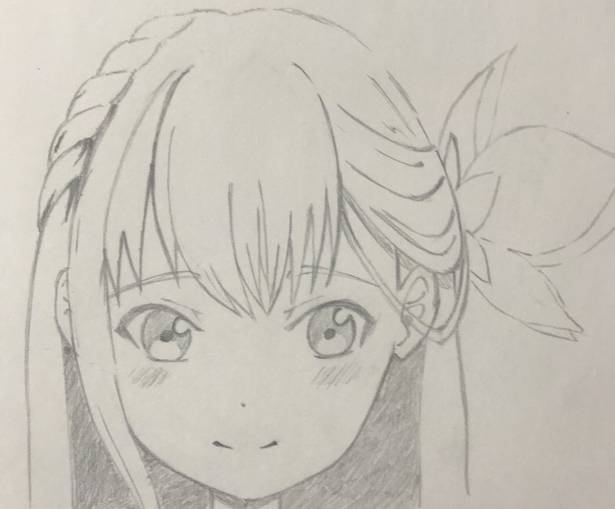 お花?髪飾りでいいのかな?以外は見ないで描いたけどお花は模写しました。 前の描いた絵がちょっと雑だったので もっかい挑戦して描きました‼︎ #ちろーる美術館