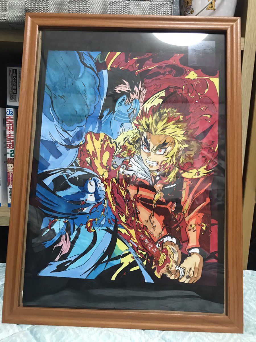 昔に書いた鬼滅の刃無限列車編のやつ 額縁に入れたらそれっぽくなった #鬼滅の刃 #イラスト