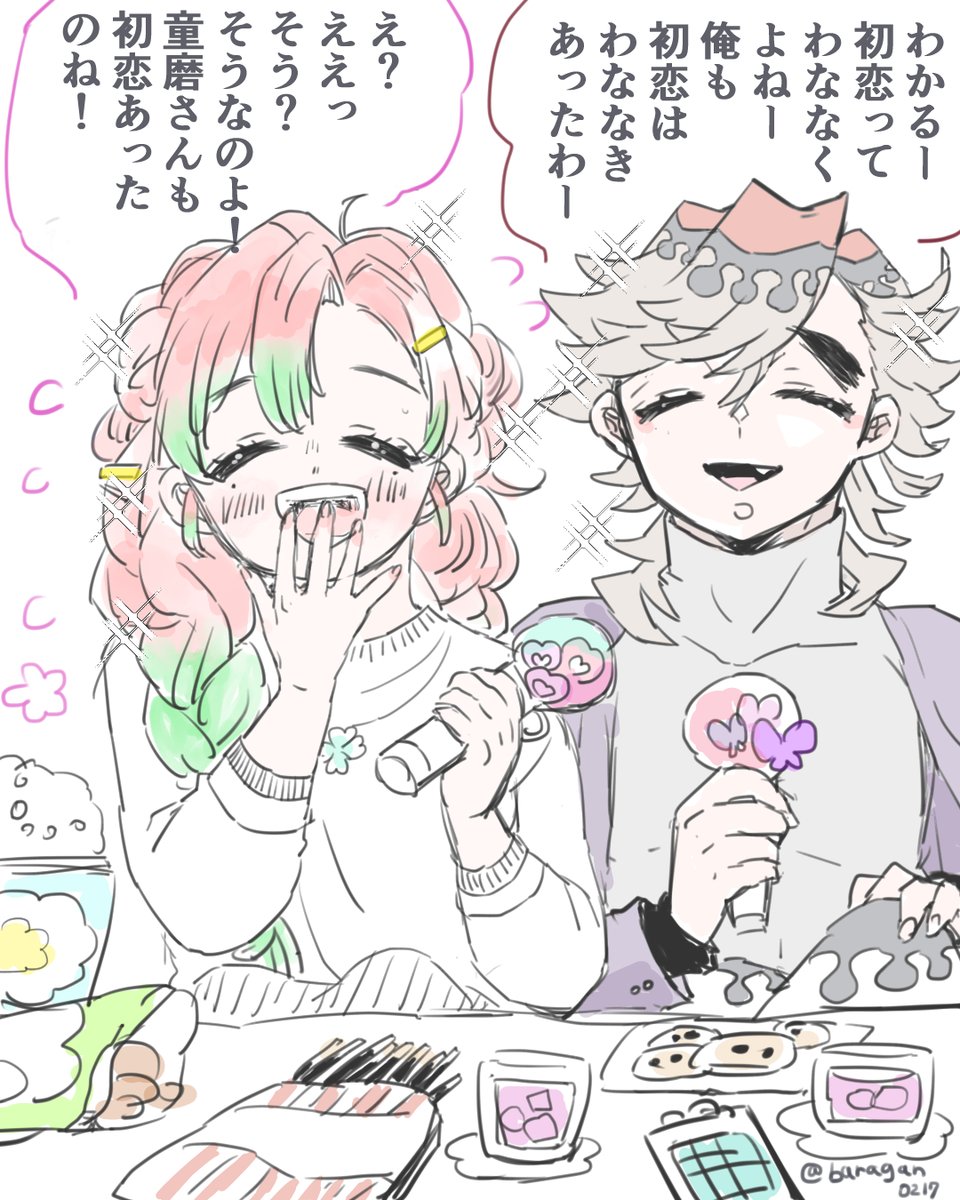 71 551 昨日の蜜璃ちゃん可愛かった! 恋繋がりで集う童磨と蜜璃ちゃん🌸🌈 初恋のわななき技名が良いと褒める童 23/05/09 00:10