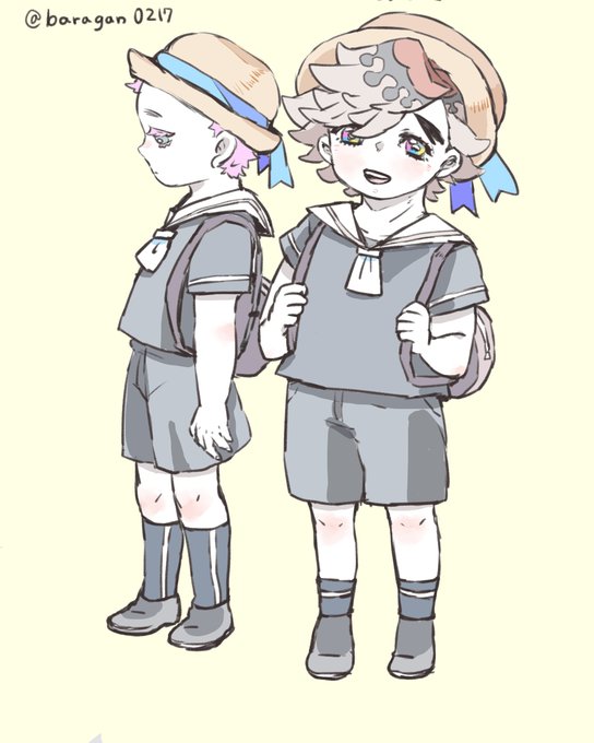 夏の制服を着る園児のどま🌈とアカザ❄️