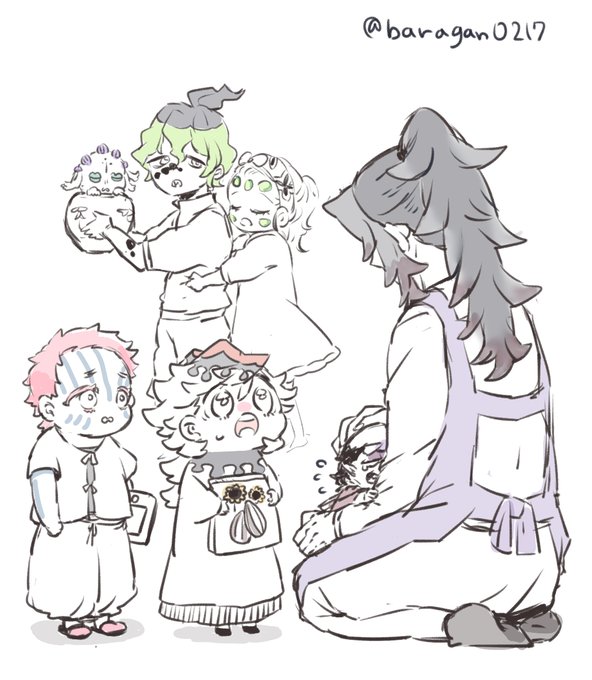 32 217 ラッコ鍋見返してみた…童の頭の模様省いたな。けど🌈の泣くところやしのぶさんのドキドキ顔は力入れて描いた記憶。何ペンで描いたんだろ 23/08/22 00:18