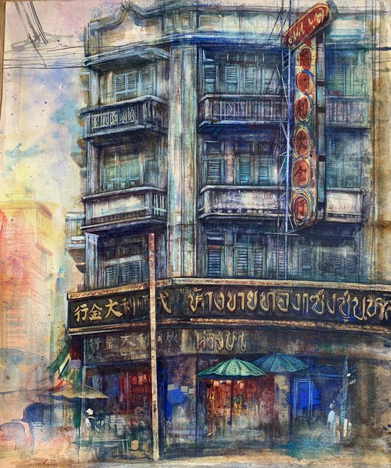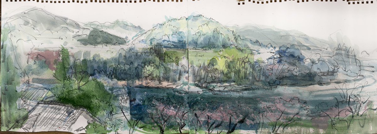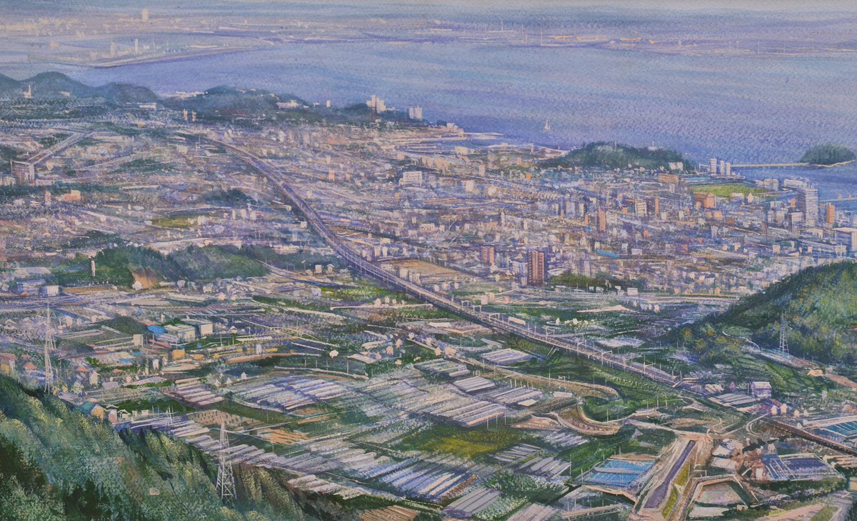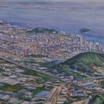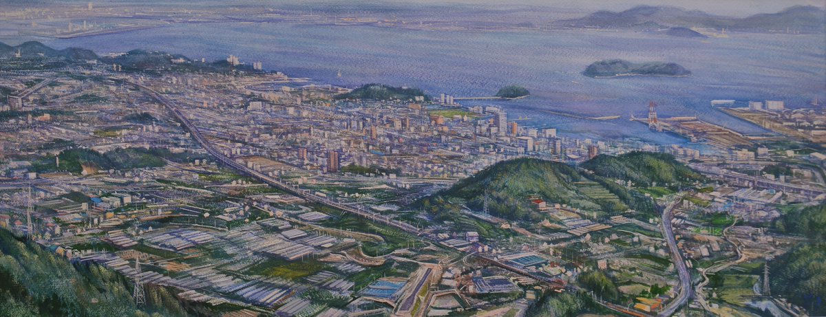 過去作発掘。愛知県蒲郡市と幸田町境の遠望峰山頂から蒲郡市街、三河湾を描く。透明水彩 アクリル アルシュ 25×60cm 2011 #水彩 #水彩画 #風景画 #landscapepainting #art #artwork #三河湾 #芸術 #絵画 #天の丸 #遠望峰山 #Watercolor #aquarelle