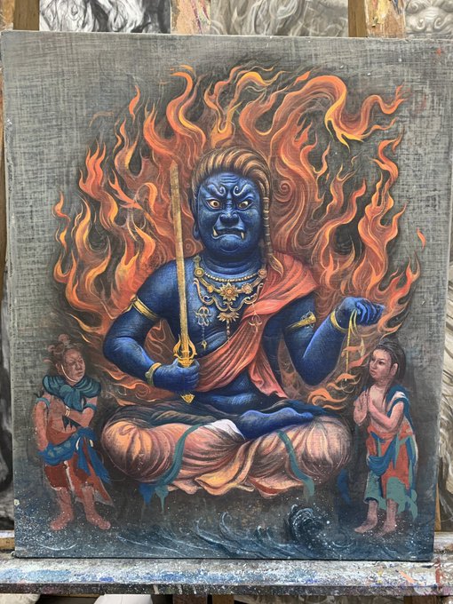 朝活のデジタル絵画。もうそろそろ田舎アトリエに向けて出立。 ベースは運慶作 伊豆 願成就院 不動明王 #不動明王 #デジタルイラスト #デジタル絵画 #digitalart #digitalpainting #fudomyoo #buhddism