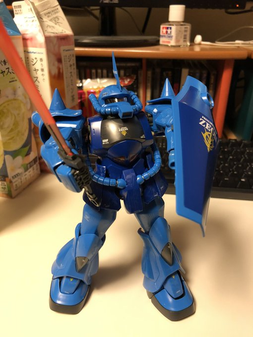 #今月作ったプラモ晒そうぜ ギリギリ間に合ったので。 ちゃんと写真撮ろうと思うと週末になってしまうので、今朝出掛けにパシャリ。 リック・ドムⅡの旧キット(て言っていいのかな?)を作製しました(`_´)ゞ #ガンプラ #旧キット