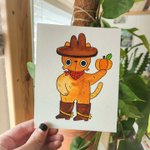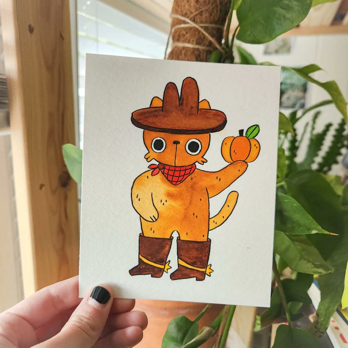 2 37 Pumpkin the Cowboy kitty 🤠 painted with watercolors #inktober #peachtober22 22/10/03 21:48