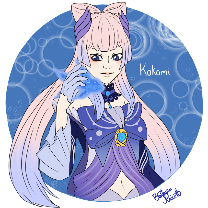 Sangonomia Kokomi, Pearl of Wisdom #fanart #art #clipstudio #genshinimpactfanart #genshinimpact #illustration #digitalart #cute #girl #priestess #kokomi #fish #sangonomiakokomi