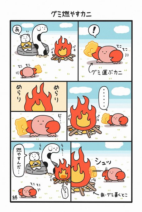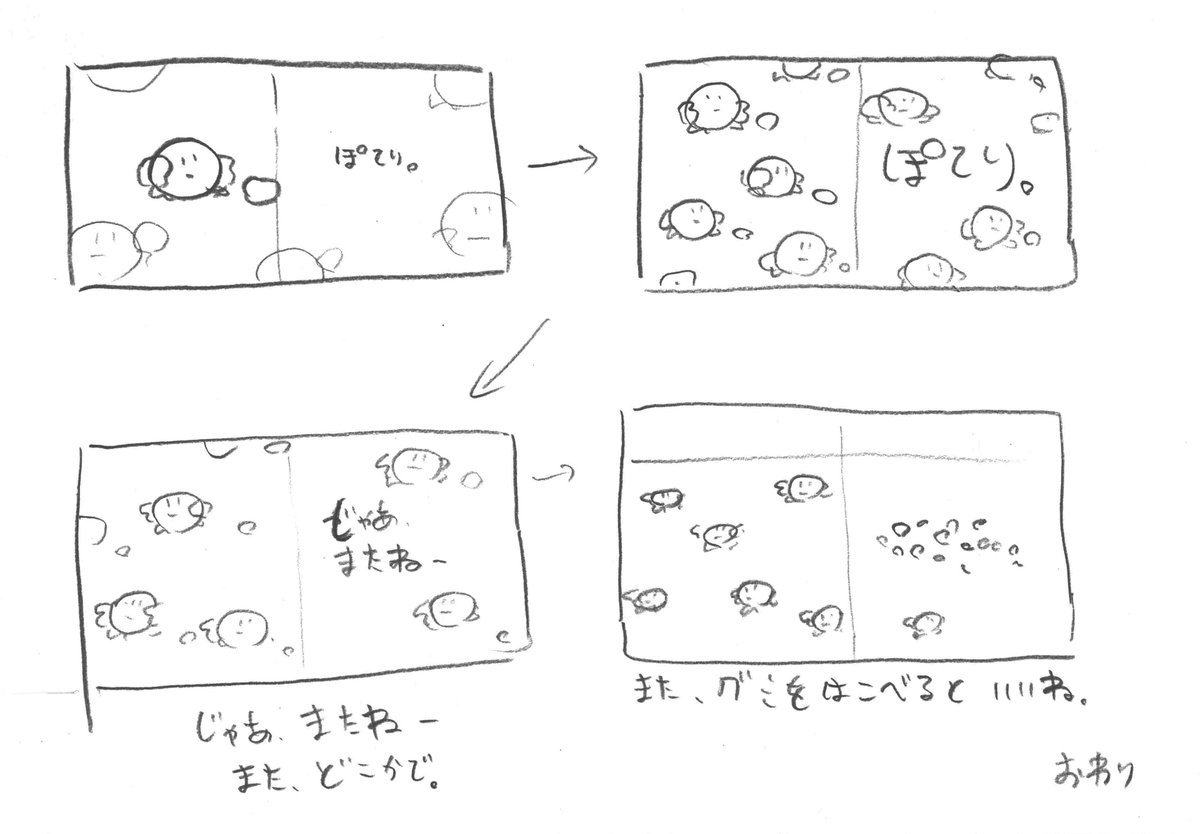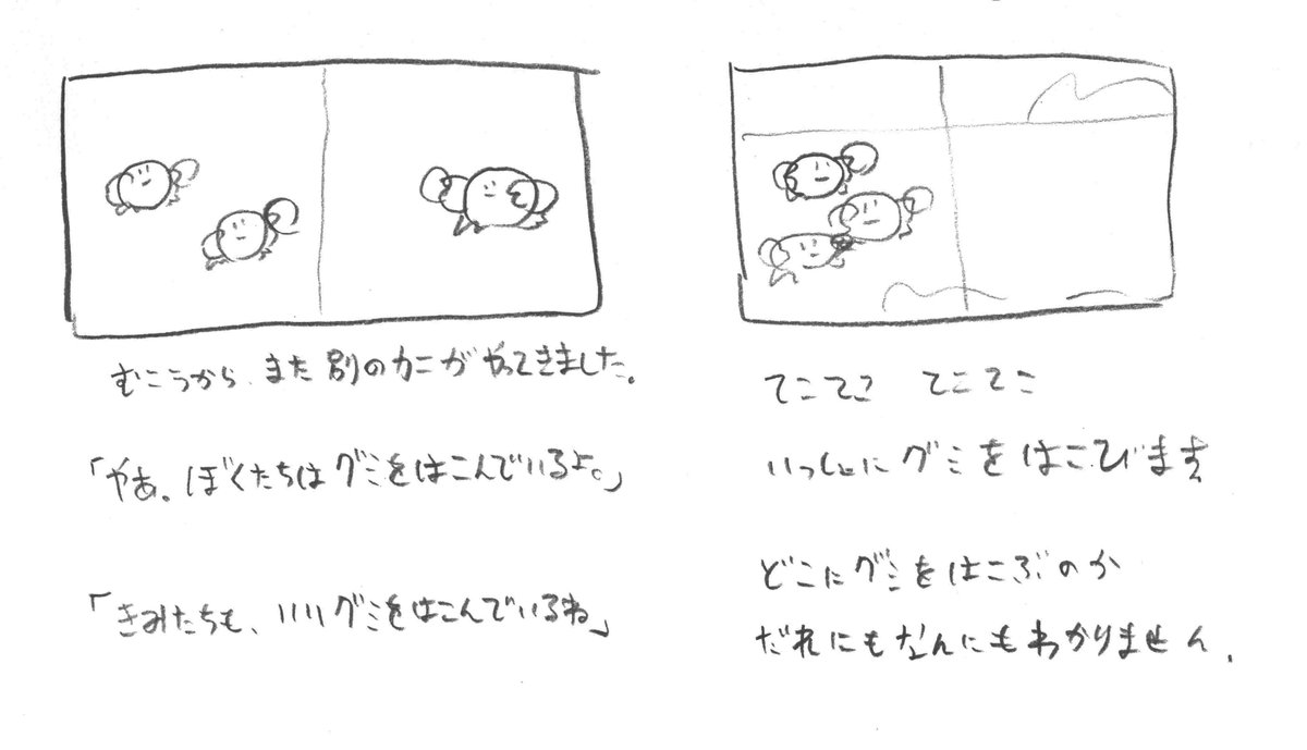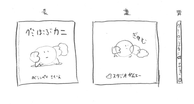 絵本「グミはこぶカニ」。読んでほしい色んな人のことを想像しながら、まずは原案を描いてみた。これをベースに改善を繰り返して作っていくぞ~✊(画像は数ページ抜粋したもの) twitter.com/i/web/status/1…