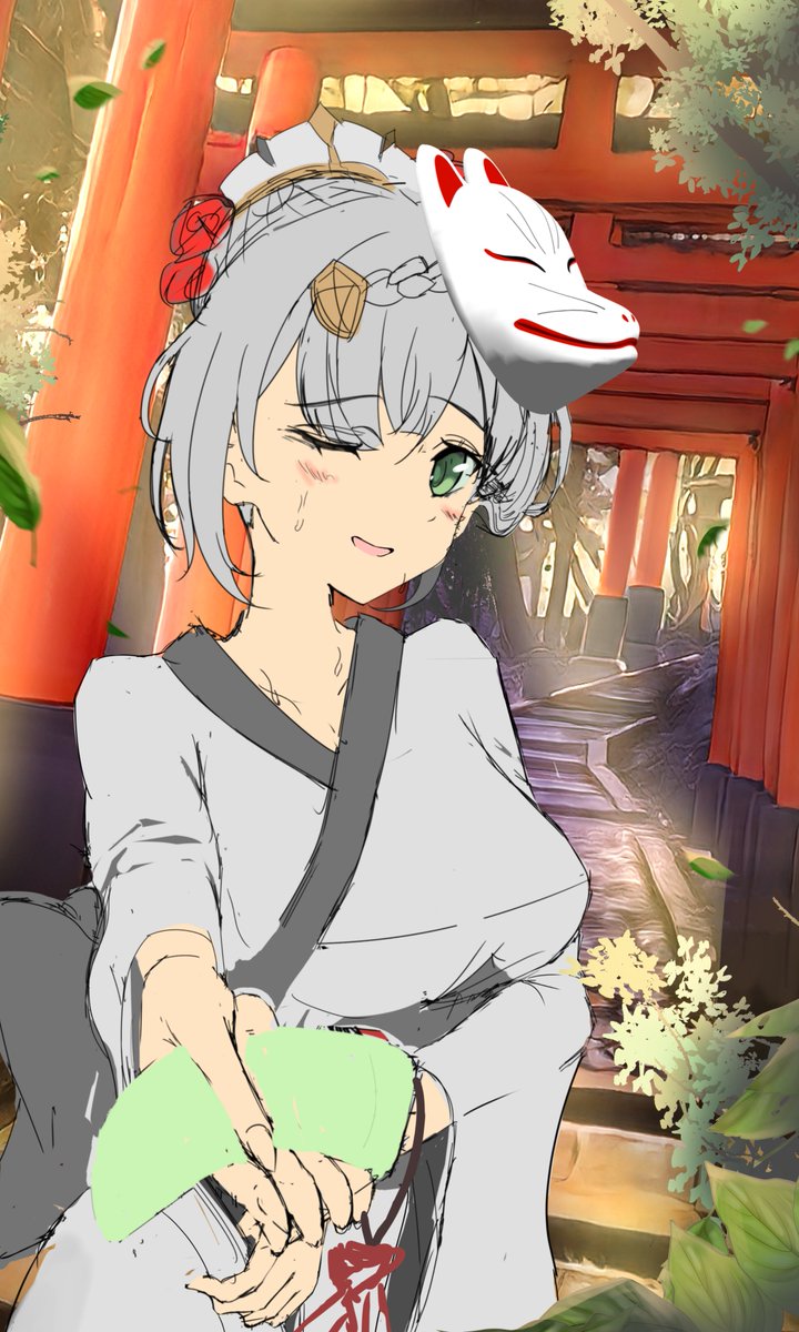#イラスト #途中経過 現在制作中の神里綾華のイラストの構図ラフです