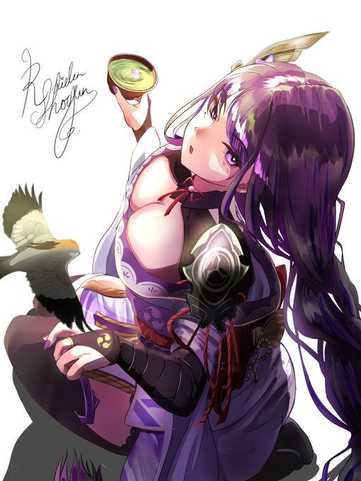 12 76 #雷電将軍 #原神 #genshinimpactfanart #RaidenShogun シンプルな白背景のものも作ってみました😌 23/01/04 12:30