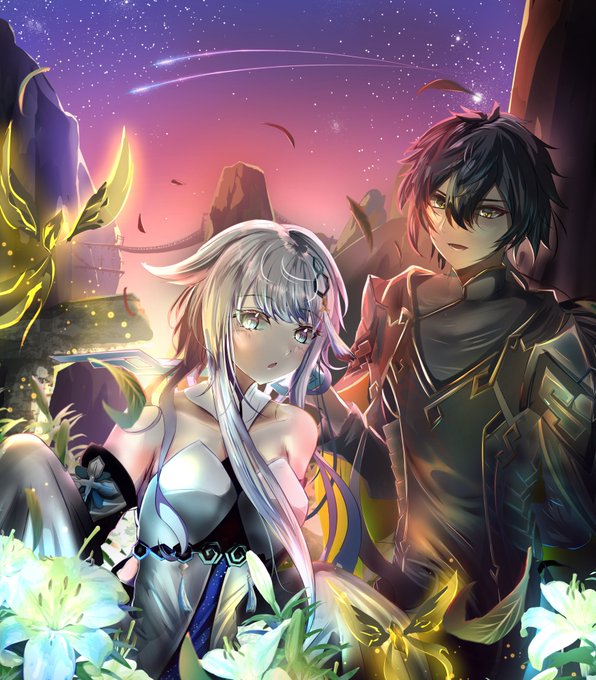 18 105 #原神 #イラスト 鐘離と帰終のイラスト完成しました! 空と蛍がまだテイワットを訪れる前を想像して描いてみました 23/02/15 16:20