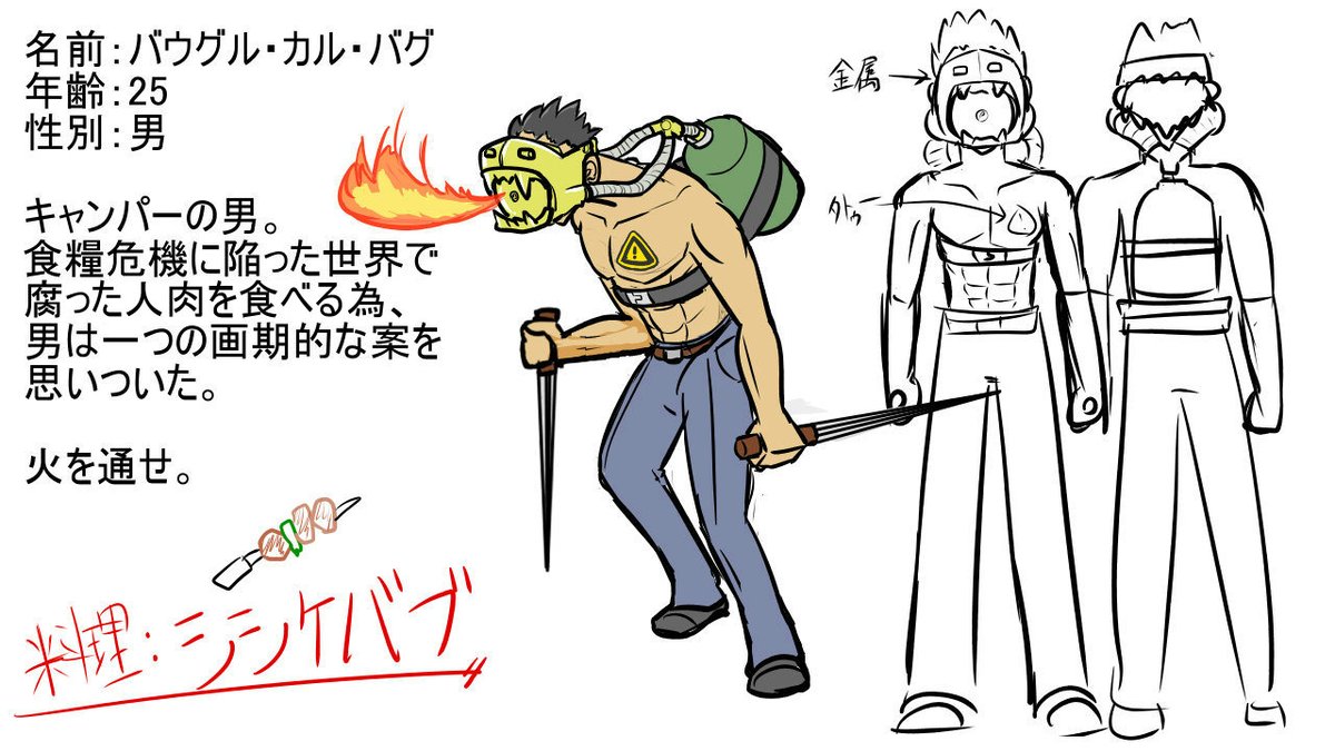 12 35 #連合誰デザ 私が描いたのはこちら。シシケバブ男とラザニアモチーフのドグマの子だ。 幼女を描いたのはまったく久々だが、よくできた。可愛いね…… 20/11/01 18:02