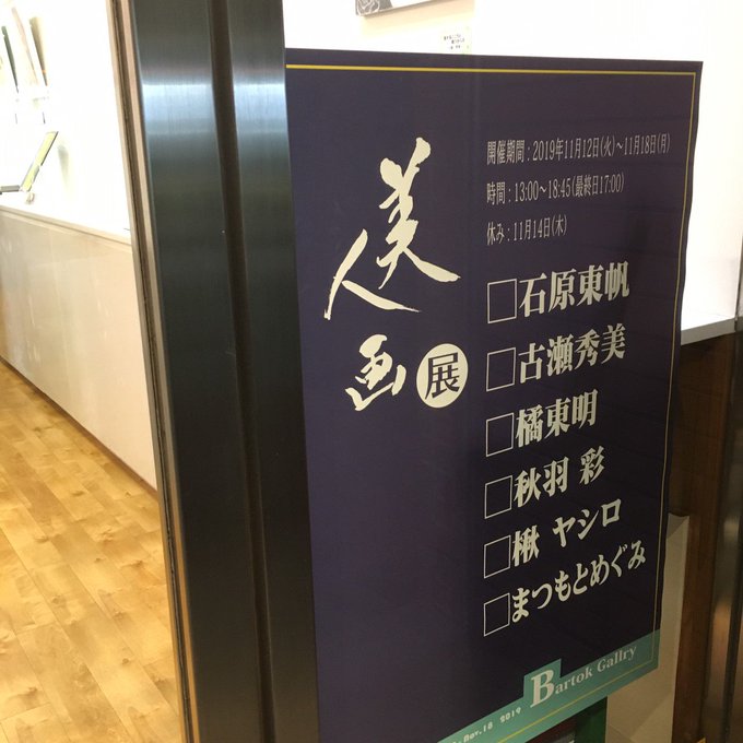 【美人画展】搬入終わりました。明日から。🤗 2019年11月12日(火)~11月18日(月) 11月14日(木)休廊 13:00~18:45 (最終日 午後5時)□石原東帆 □古瀬秀美 □橘東明 □秋羽 彩 □楸 ヤシロ □まつもとめぐみ #絵描きさんと繋がりたい #私の絵が好みって人にフォローされたい