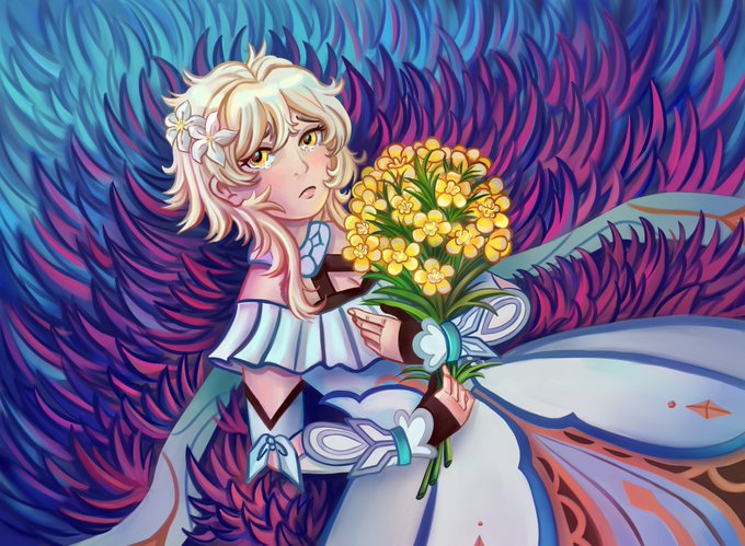 В темноте, обнимая букет желтых лютиков #GenshinImpact #原神 #Lumine #chilumi #genshinimpactfanart