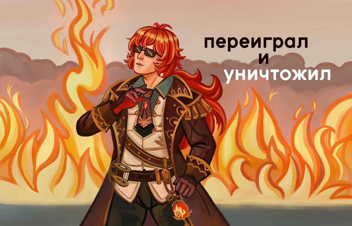 Поучаствовала в ивенте-перерисовке. Что еще могло породить мое сознание, когда я увидела оригинальный мем👏 #GenshinImpact #genshinimpactfanart #原神 #Diluc #DilucFanart