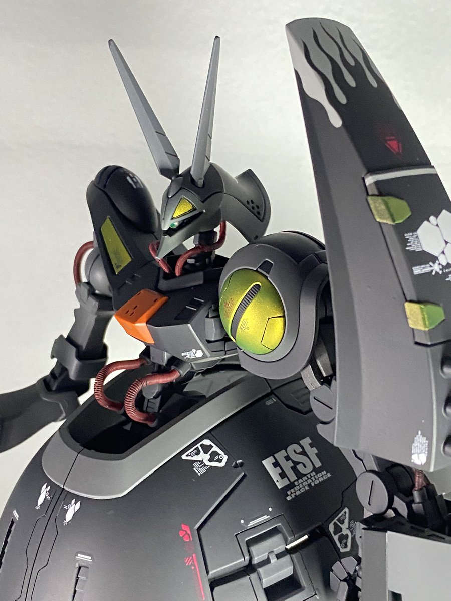 サーバインやっと完成しました。禍々しさが欲しくて、肩や脛?のあたりをパテで加工したり、瞬間接着剤で生き物っぽくしたり。塗装は初めての偏光パールで四苦八苦…時間はかかったけど楽しいキットでした。写真は続くw #ガンプラ #ガンプラ好きとつながりたい #サーバイン