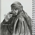 Older iraqi woman .. By ink pen and black watercolor #olderwoman #woman #watercolor #inktober #Watercolourpainting #draw #art #paint
