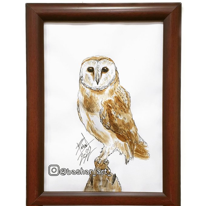 بومة الحظيرة بقلم الحبر و القهوة ☕ A barn owl By ink pen and coffee ☕ #قهوة #نيسكافيه #رسم #لوحتي #drawing #artwork #coffee #coffeeart #coffeelover #inktober2022 #wildlife #animal #animallovers #sketches #watercolour #naturelovers #naturephotography #owl #barnowl