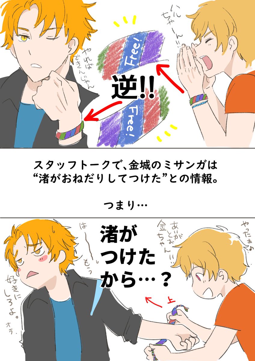 最初は「金城クンは上下とか気にしないでつけたのかな☺️ウフフ」とか思って見てたんですが、途中で情報が加わったことで新たなドラマが生まれてた(かもしれない)ところ✨ 違ってたらごめんね!既出だったらごめんね! そして絵が汚い一発描きでごめんね… #細かすぎるけど伝わるFreeFS