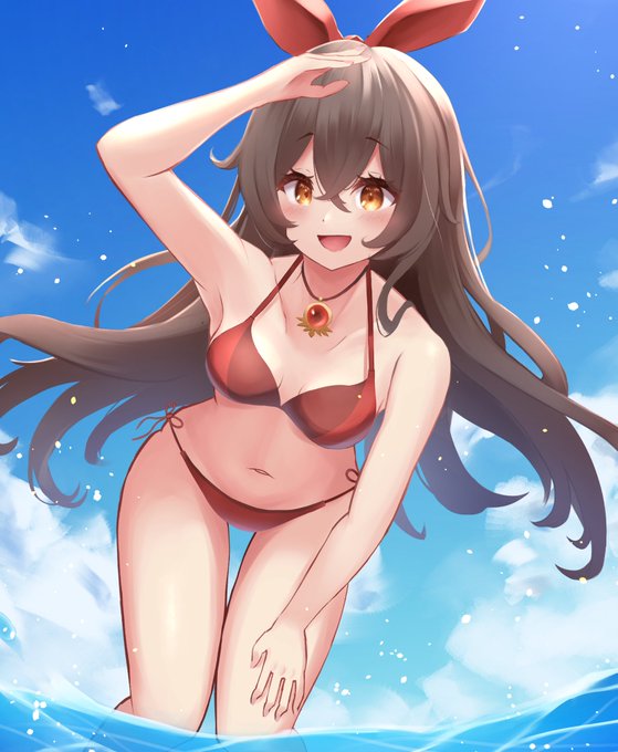 79 323 アンバーちゃん誕生日おめでと〜〜〜〜〜!! 去年描いた水着アンバーちゃん(幻覚)でお祝い🎉 #アンバー生誕祭2022 22/08/10 00:13