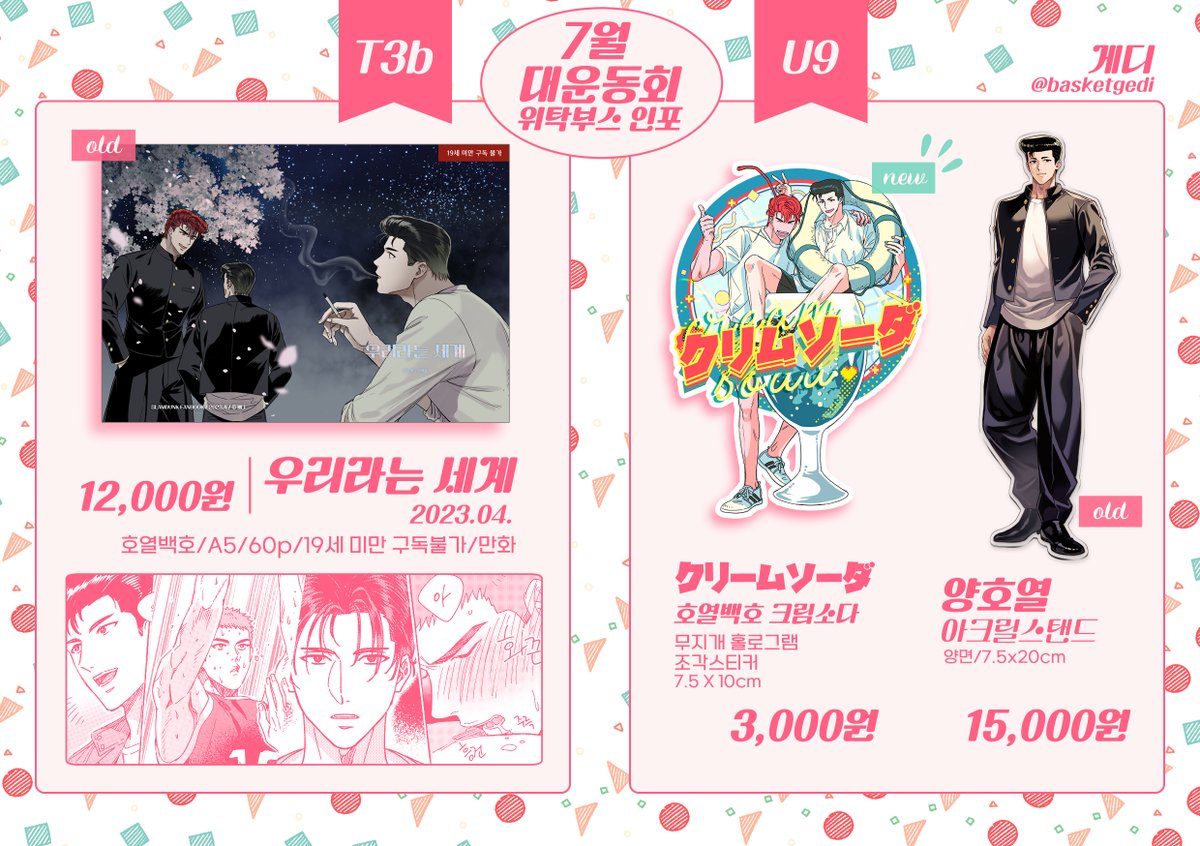 RT) 7월 대운동회 초보자&게디 🏀슬램덩크 호열백호 스티커 SHOP🏀 🩵초보자님의 도키도키 호백스티커 세트 🩷게디의 호백 크림소다 조각스티커 함께 통판합니다🎀 📌윗치폼 witchform.com/deposit_form/4… 📌통판 기간 07.26 19:00 ~ 07.30 23:59 RT 두 분 추첨해서 스티커 각각 한세트씩 보내드려요❣️