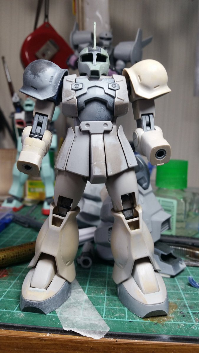 0 4 色味の確認のため仮組 下肢部は暗色のままでいくか明色に塗り直すか悩む… #旧ザク #ガンプラ 20/03/22 11:52