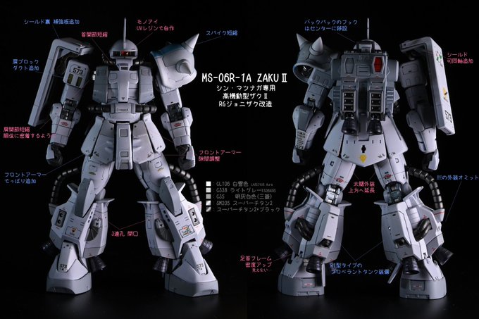 1 5 RG シン・マツナガ専用高機動型ザク の改造点あれこれ 青文字がR2型からR1型への改造点です #RGマツナガ機 #ガンプラ 21/03/23 20:01