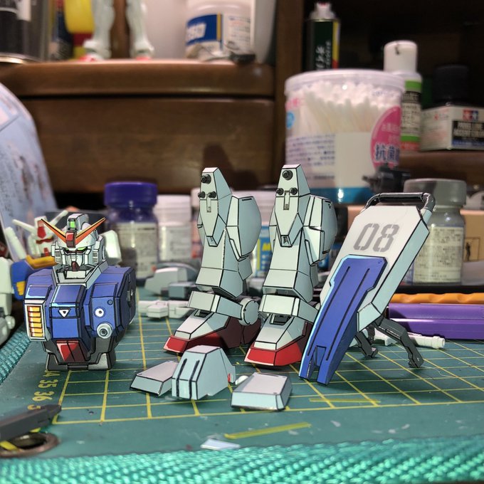 9 84 イラスト風陸戦型ガンダムの進捗です! とりあえず頭部、胴体完成しました^_^ #イラスト風模型 #ガンプラ 23/01/29 19:13