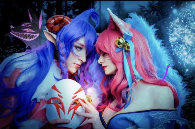 Leauge of Legends Ahri & Kindred Cosplayers in the spirit blossom skin 🌸💕 Cosplayer: @bastian_kerk & @EdenCraftDesign Photo: @VKoenigsmarck #leaugeoflegends #ahricosplay #kindredcosplay #cosplaylove
