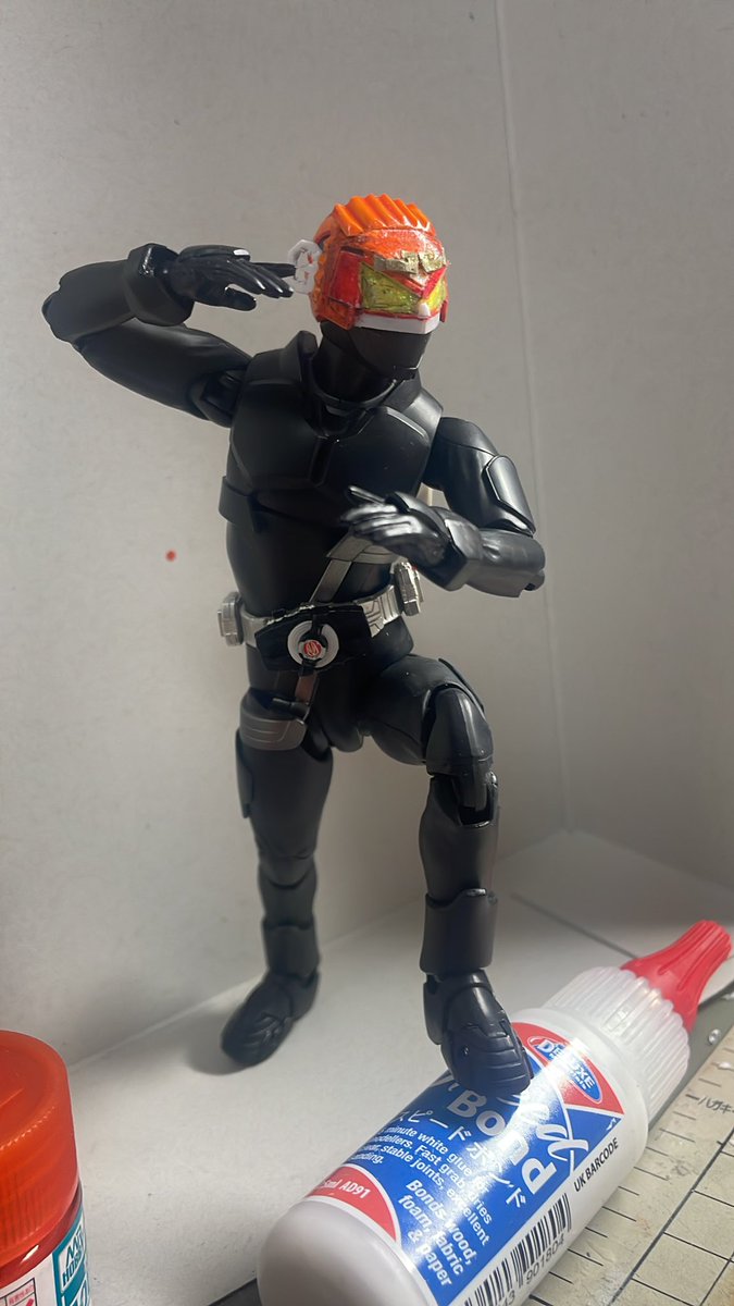 ベースはSHFエントリーギーツなんのでB社商品 造形にプラバンを使っているのでプラモ マグナムシューターを持てるのでガン つまりこれはガンプラ #ガンプラの画像を貼るとRTされると聞いて