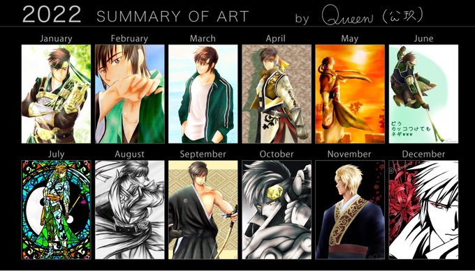 #2022年を振り返る テンプレートお借りしました。 7月以外は大兄上🤣うん!知ってた! 来年は他の推しも描いてみたいと思いつつ、きっと大兄上描いてんだろな🫠 8月のアナログ以外はデジタルで頑張った1年でした😌
