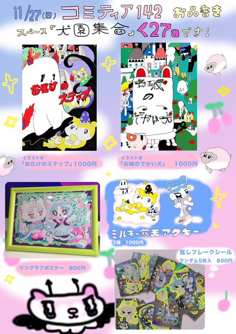 本日開催の #コミティア142 に出ます! 今日お越しになる方はぜひブースに遊びにきてくれると嬉しいです🪐 残り少なくなってるイラスト本やキーホルダーなど持っていきます。 リソグラフポスターも今回出します❣️ スペースは『く27a』 よろしくお願いします🍥 #COMITIA142 #コミティアお品書き