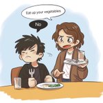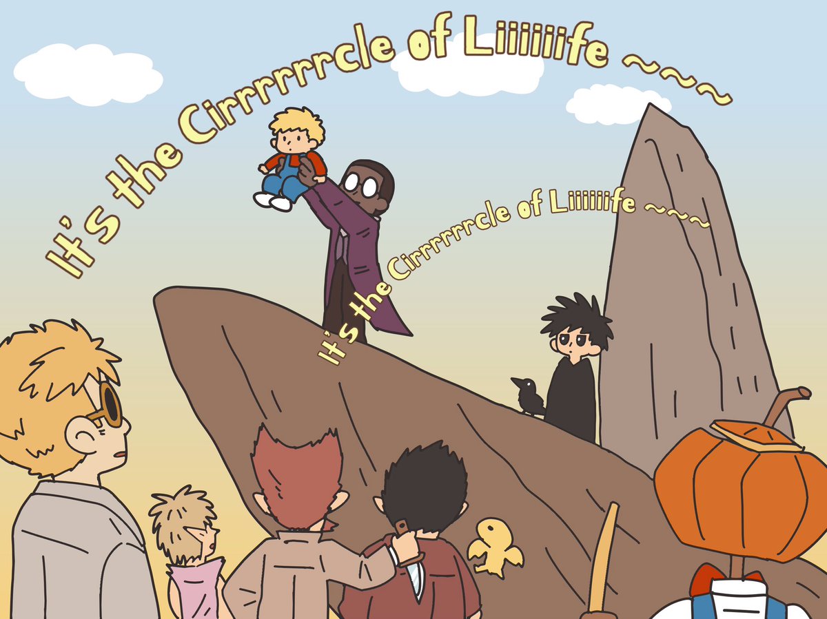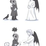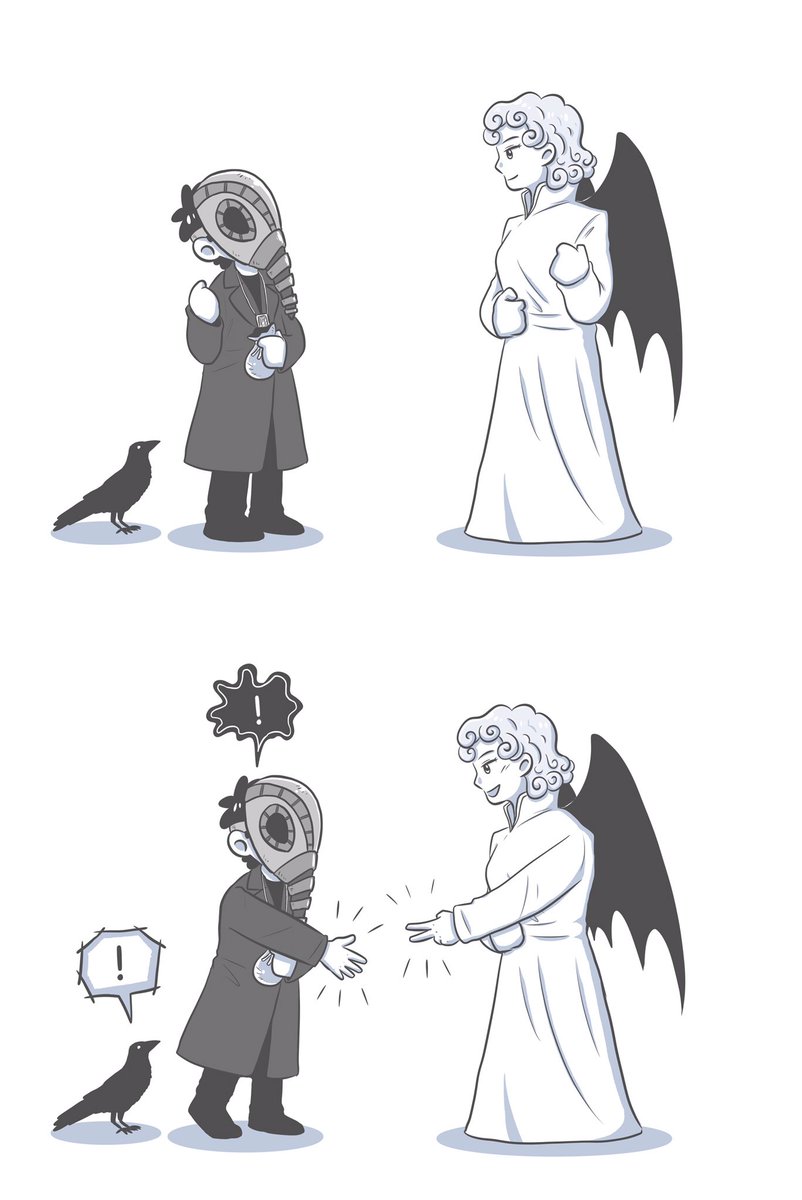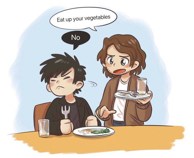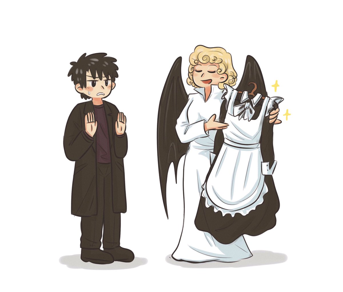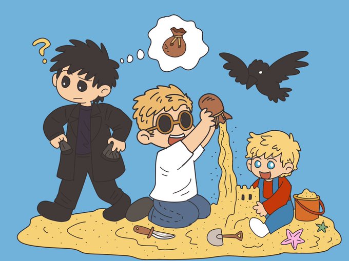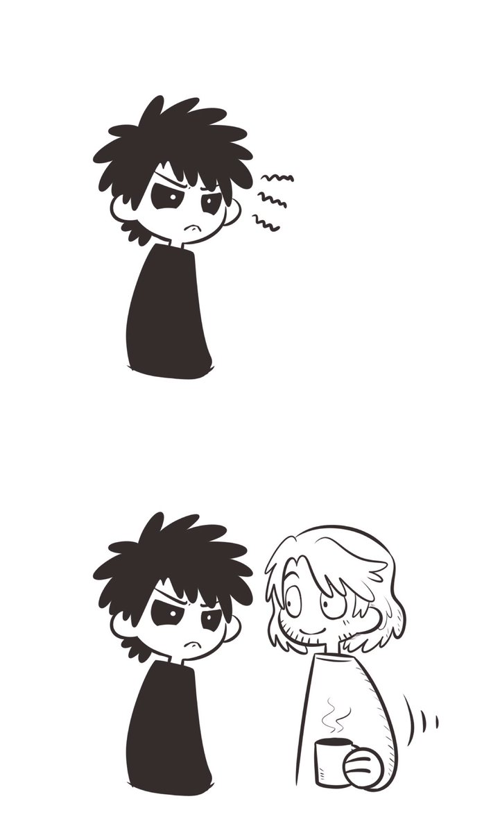 -Daniel, listen up. -Against vampires, use the cross. -Against werewolves, use silver bullets. -Puppy~ -Against Sandman, use coffee. -Uh, Corinthian? You better look back. -Don't teach him the wrong things! #TheCorinthian #TheSandman #thesandmanfanart