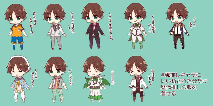 慎くんで9人描きました~!! 歴代推しに思い当たりのある人は握手してください #現推しキャラにいいねされた分だけ歴代推しの服を着せる