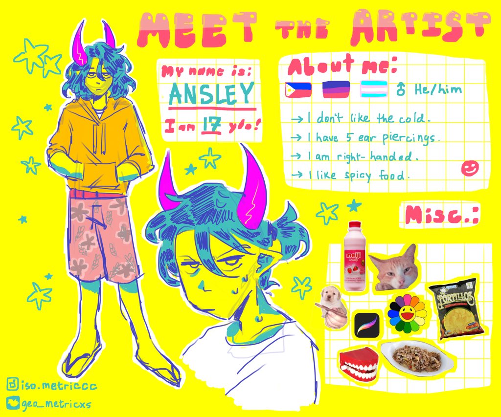 #ArtistsofSEA #artph hello im ansley/geo, a transman from 🇵🇭 philippines —i like drawing my ocs and cookierun, sometimes anime and i like to use alot of vivid colors in my art 🍭