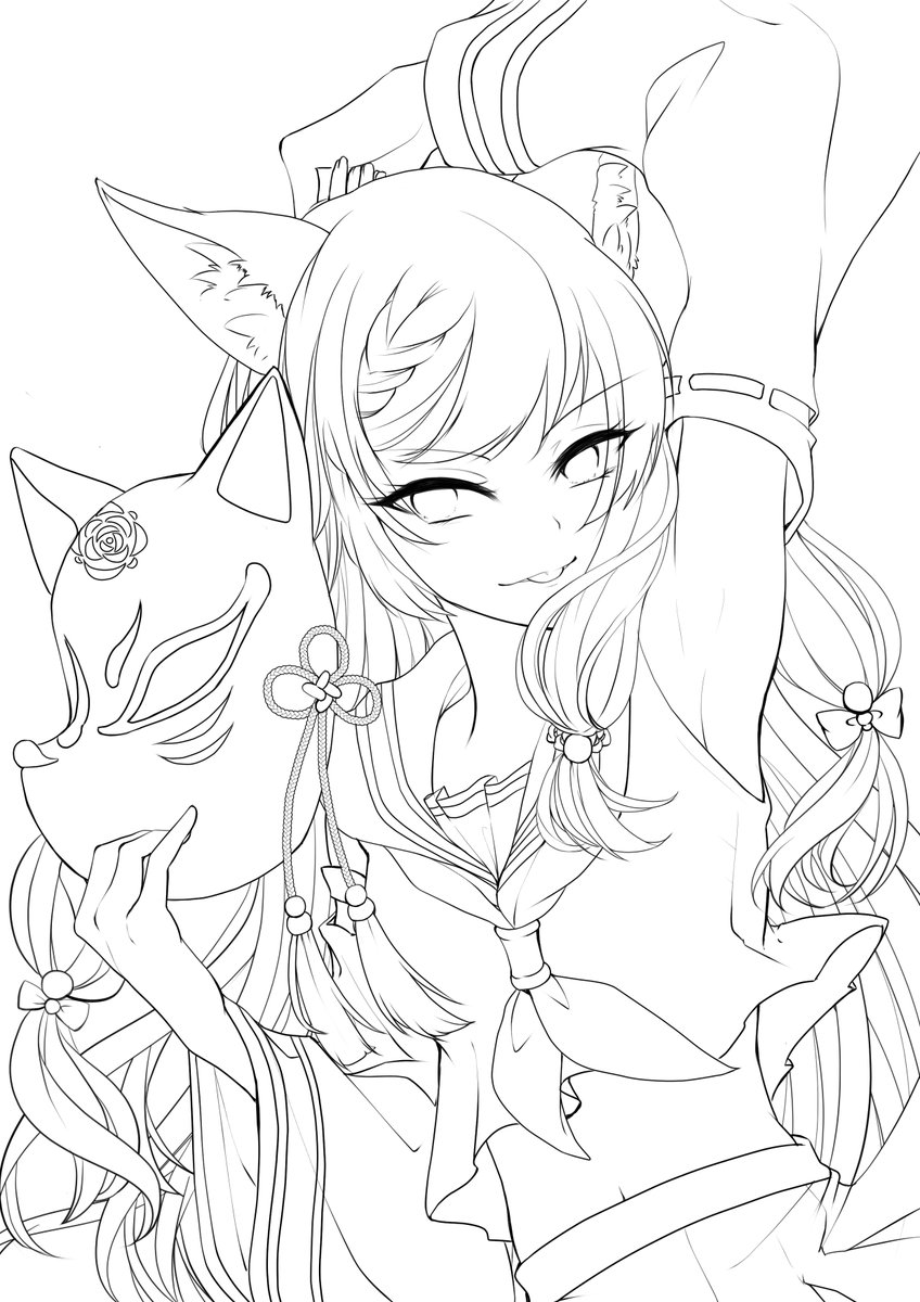#皆さん線画と塗った後を見せてください いまもうちょい綺麗に線画描ける気がするけど、今見せれるやつで残ってるのこれでした