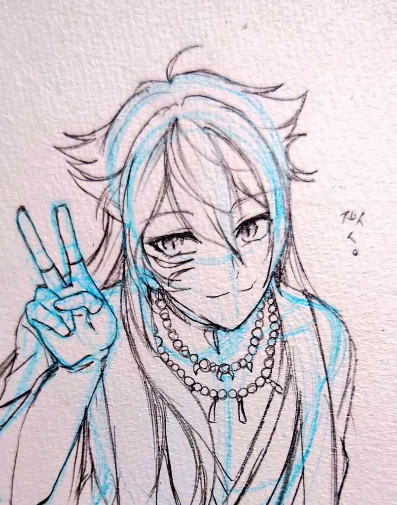 1 7 落書きしていたPart2 タグ付けるほどでもないのでここで ⚔️と🦊 (好きな衣装の描いたけど、似なかったので通常も描いた) 22/01/02 18:52
