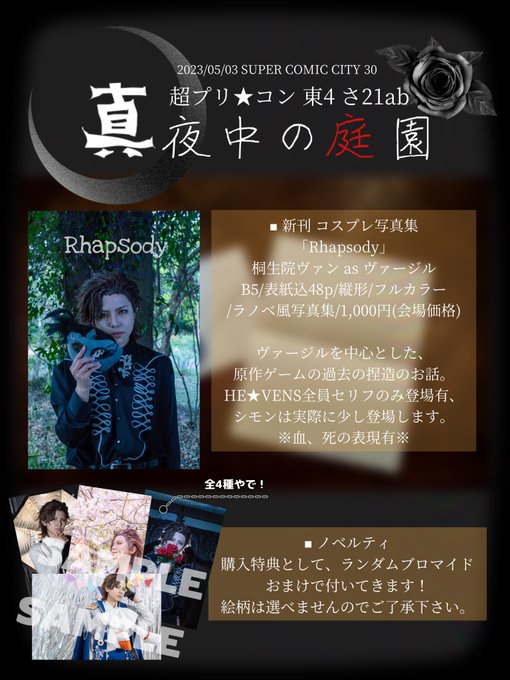 【サークル参加します!!】05月03日(東京)SUPER COMIC CITY 30-day1-内 Heavenly songs 3| #イベントGO_赤ブー akaboo.jp/event/item/201… そういえばヘヴプチ申し込みしました!!! 黒庭しばりのそれぞれの個人の写真集を出します!カノンくんのシーちゃんと合同だー!ウッヒョー!新刊頑張ります!