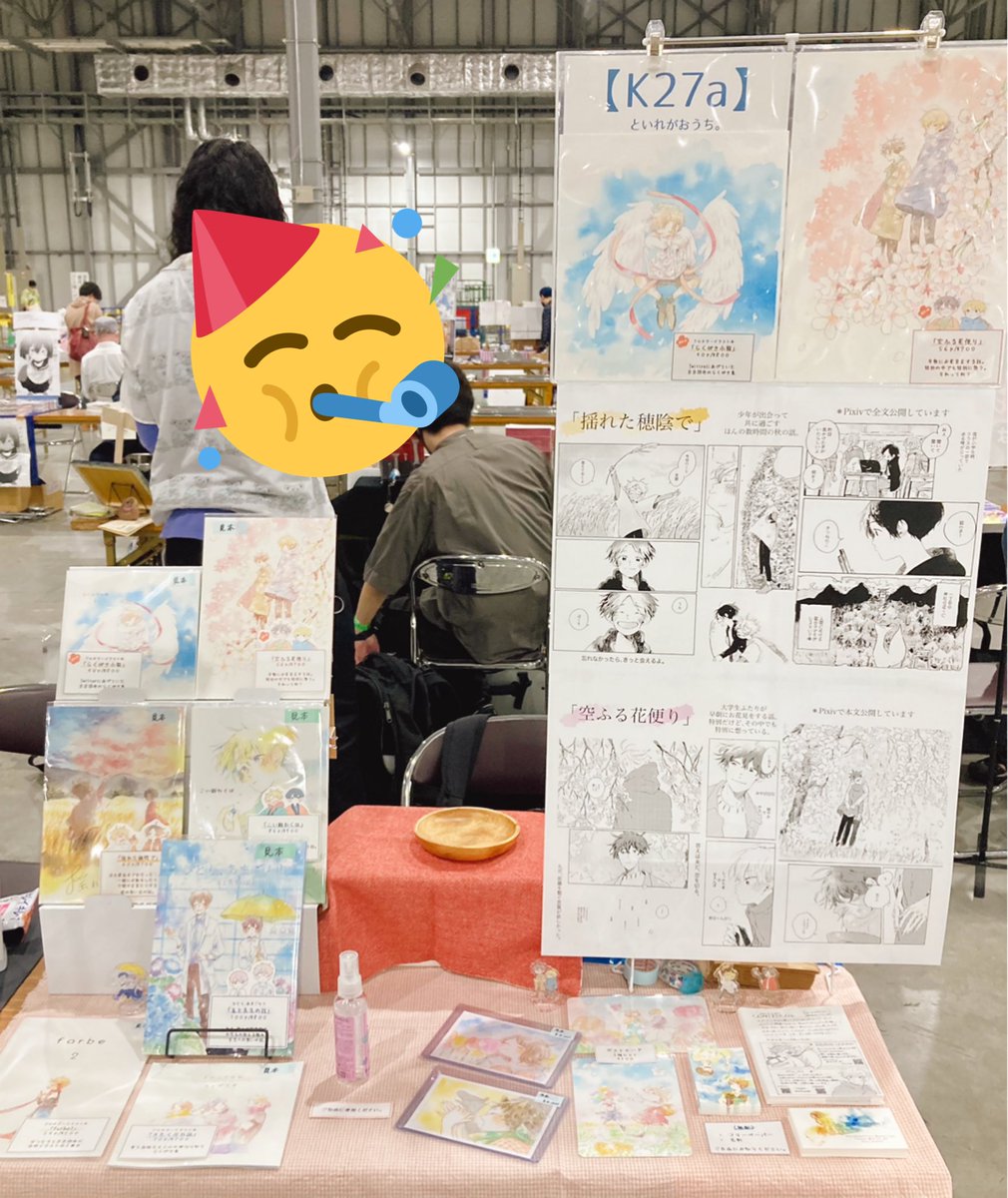 9/4(日) #COMITIA141 になつたろさん(@natsu_333)と「といれがおうち。」で申し込みました🌻お隣は「おこめのかし」のせんさん(@uitemasen)!3人で作る合同誌がある予定だよ!今後もいろんなテーマで作るよ!楽しみ!🏖トーンぺたぺたさせてもらったせんさんのサクカと並べると最高なので見て〜!