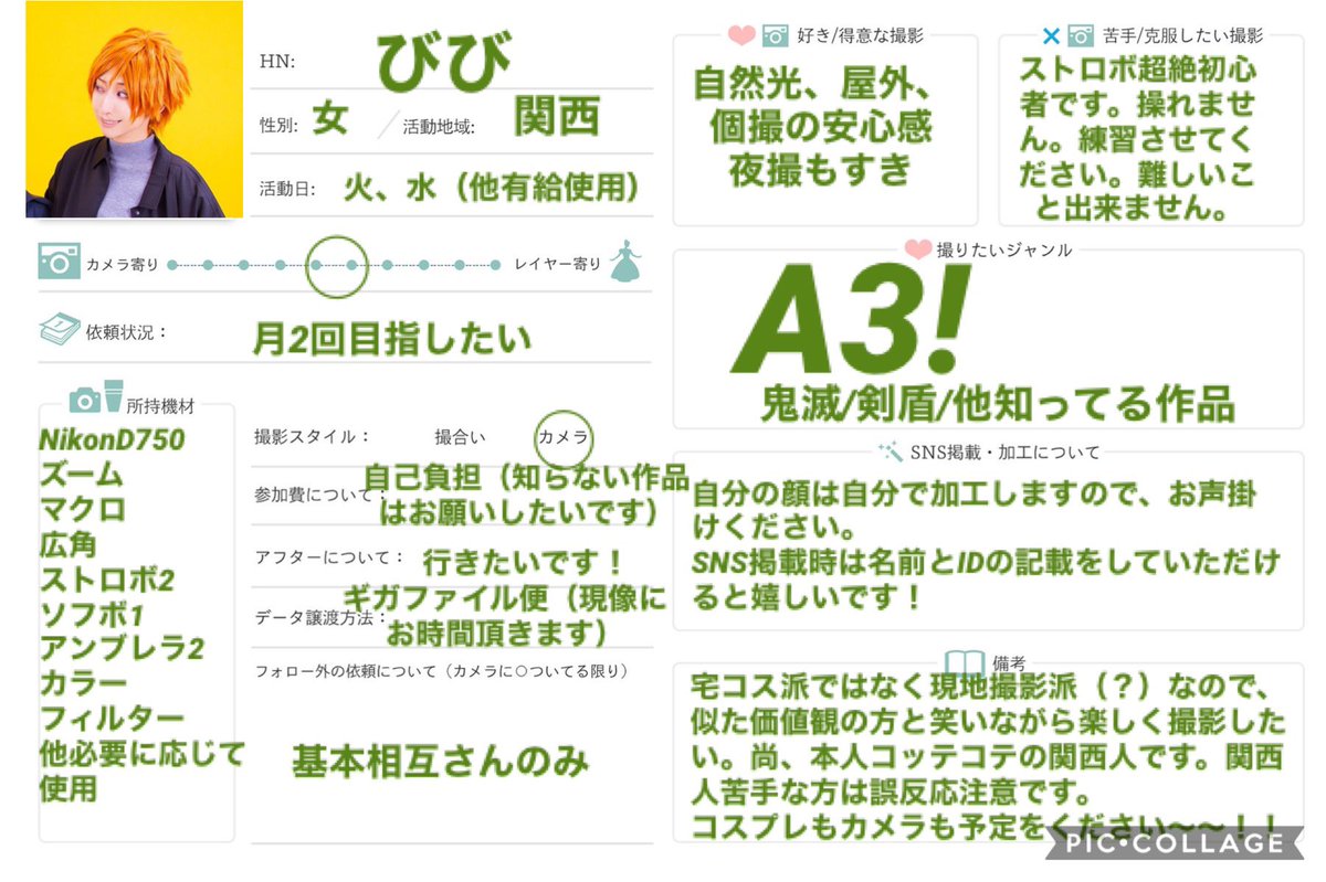 関西でコスプレしたりカメラ握ったりしています。 最近はA3!が熱いです🌸撮影にご一緒出来る繋がりが増えますように 2▶︎🙌本人 3▶︎📸コスプレ撮影 4▶︎📸ポトレ撮影 #レイヤーさんと繋がりたい #カメラマンさんと繋がりたい #カメラマンプロフ #フォロワーさんのフォロワーさんと繋がりたい