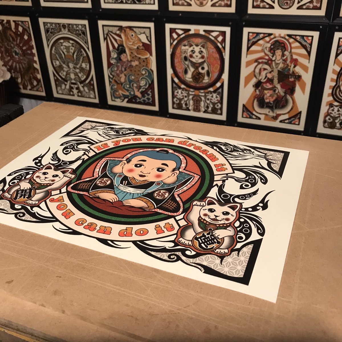 夢叶う福助さん 良い発色で完成😊 #イラスト #福助さん #夢叶う #開店祝い