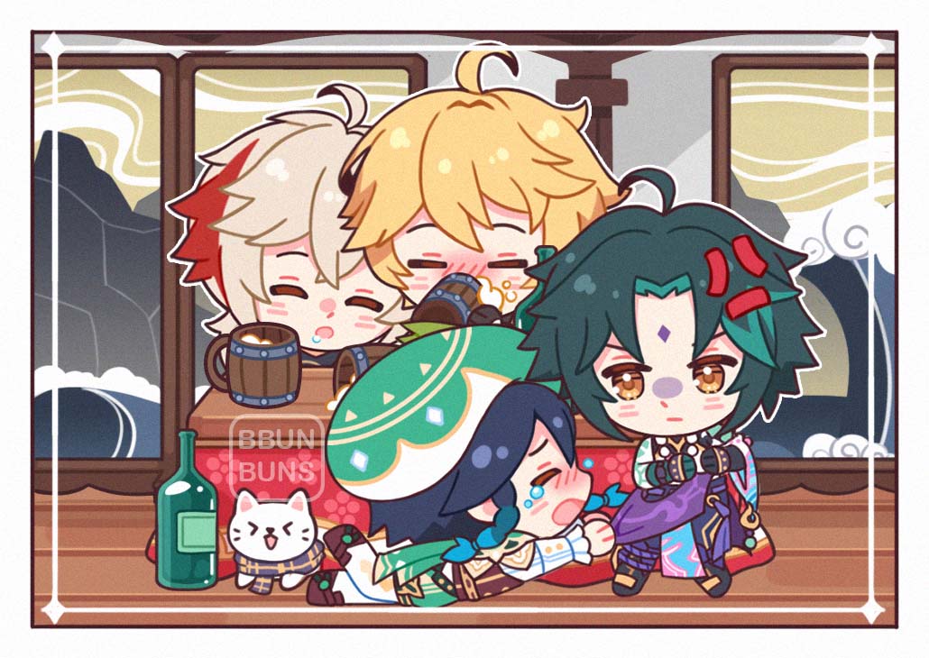 Anemo bois just hanging out~ 🍺🍻 #GenshinImpact #genshinimpactfanart #venti #XIAO #Kazuha #AETHER