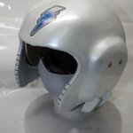 コスプレボードやサンペルガ(旧ライオンボード) 等の素材を #ペパクラデザイナー で作画展開& 立体化し。#タケシール シェルキャストを 2~3回塗布してから、なんやかんやで 一個の展示用ヘルメットを制作する。 #コスプレ #多分私しかやってない