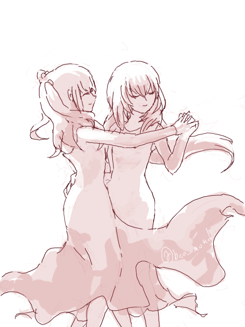 今日、おもいでの~をTVで見て 女の子のダンスが可愛かったので つい落書きしました。手慣らしマモ縁