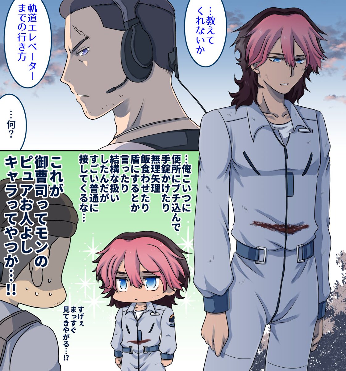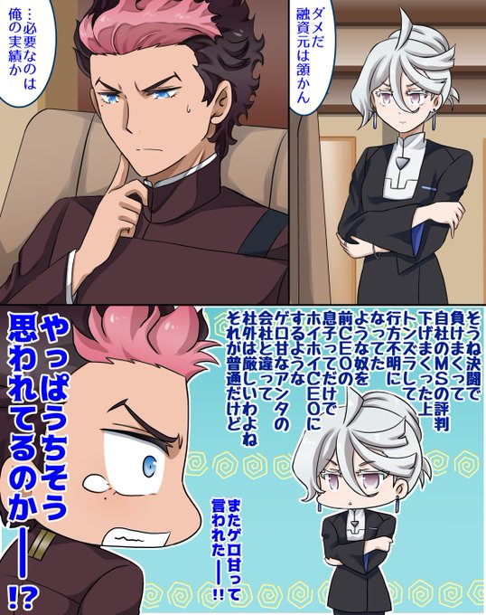 勝手にオルコッさんとの道中まんが。MSでの移動は無理だろうから、フォルドトラックとかで軌道エレベーターへ向かったかんかなーとか。それなりに大きいだろうジェターク社のCEOにすんなりラウダが就任してる辺り、パパの人望が偲ばれるというものです…☆ #水星の魔女 #G_Witch