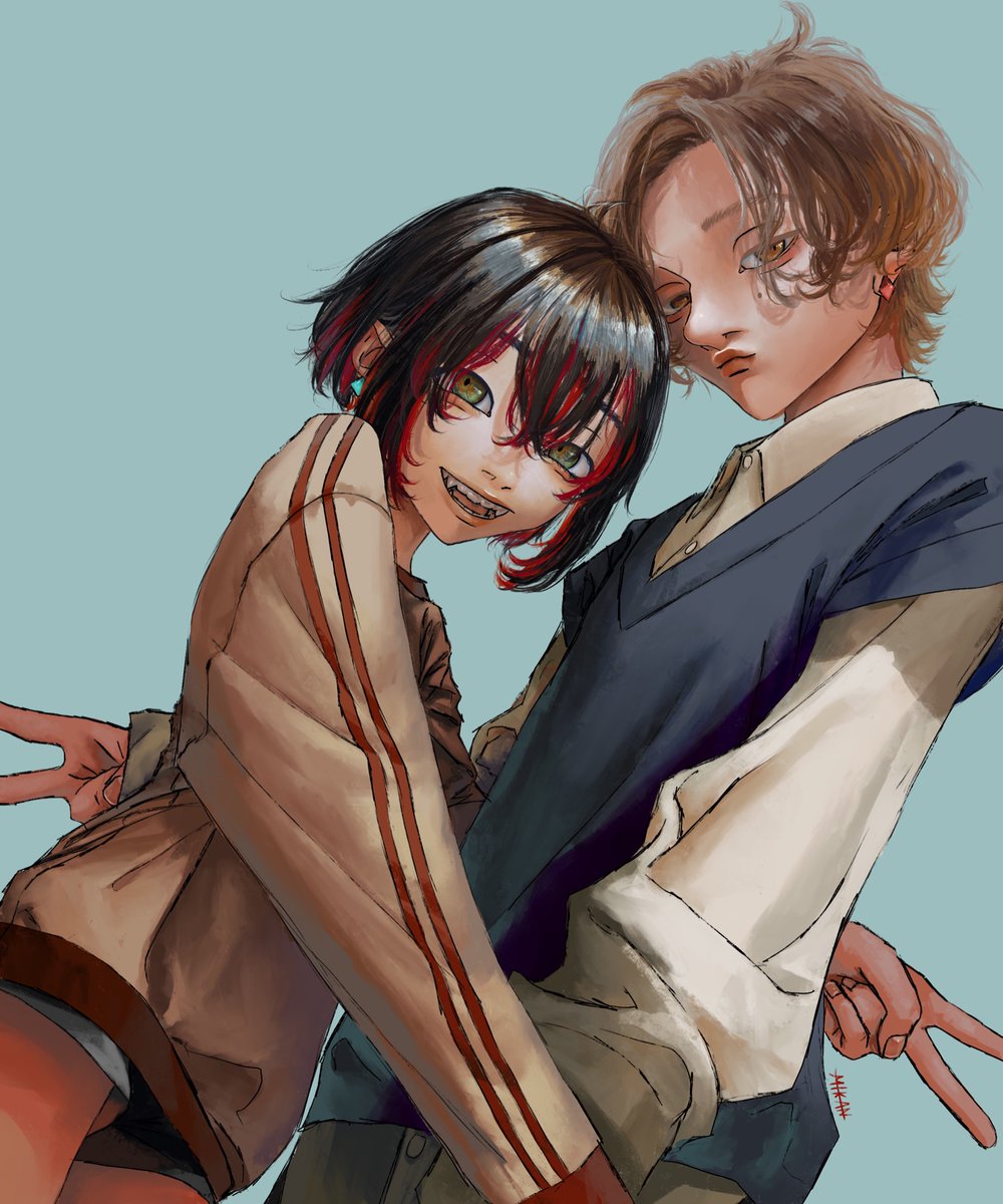 従兄弟同士(全然似てない) ちっちゃい方が従弟 #イラスト #一次創作 #オリキャラ