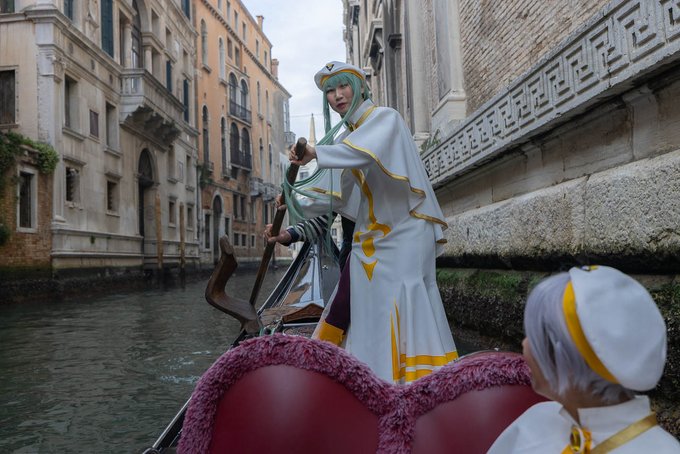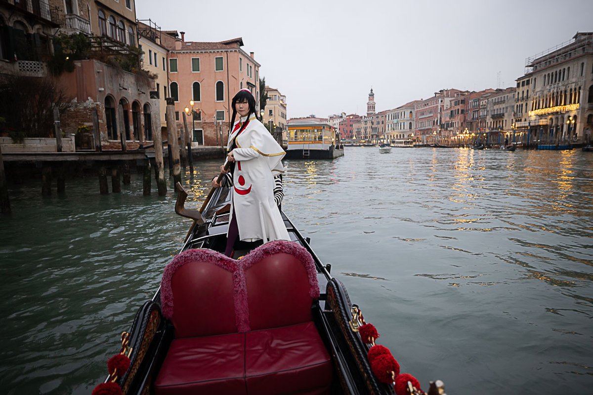アレにウンディーネコス漕ぎで通算6人目なのでエキスパートwwって言われた嫁改めアリス 前にアンジーの娘さんにアリスコスしてもらったときに、こんな髪型でゴンドラ漕げるわけないじゃんと言われたが案の定、髪がオールに絡まるw #ウンディーネの里帰り2022
